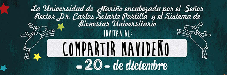 El Sistema de Bienestar Universitario invitan a toda la comunidad de la Universidad de Nariño, a celebrar Compartir Navideño, donde habrá concurso de villancicos y premiso a la oficina mejor decorada. Inscripciones abiertas a partir del 11 de diciembre en las Oficina de Bienestar Universitario