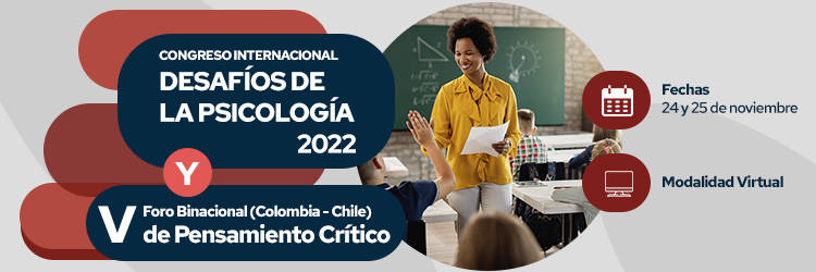Compartimos con ustedes la invitación oficial al evento Congreso Internacional Desafíos de la Psicología 2022: Un encuentro de saberes desde la Psicología hacia los retos actuales de la educación Y V Foro Binacional (Colombia- Chile) de Pensamiento Crítico a realizarse entre el 24 y 25 de noviembre de 2022