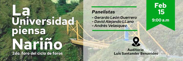La Universidad de Nariño invita al público en general a participar en el 2do foro del ciclo de foros denominado “La Universidad piensa Nariño” que se llevará a cabo el 15 de febrero