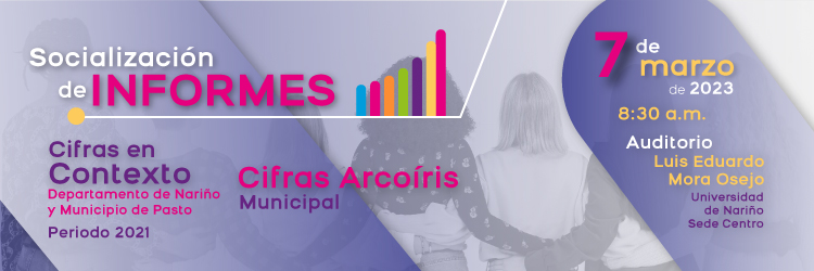 Para el Observatorio de Género de Nariño es de sumo agrado invitarles a participar en la socialización de los informes Cifras en Contexto Nariño, Cifras en Contexto Pasto y Cifras Arcoíris período 2021. Evento que tendrá lugar en el marco del del Día Internacional de la Mujer.
