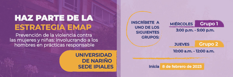 La Fundación PROINCO -IRC en articulación con la Comisión de Equidad de Género y Diversidades por OSIG y con la Dirección de Bienestar Universitario extienden una invitación cordial a inscribirse a la estrategia EMAP – Prevención de la violencia contra las mujeres y niñas: involucrando a los hombres a través de la práctica responsable.