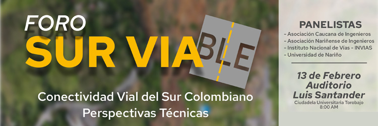 La Facultad de Ingeniería invita a la comunidad universitaria para ser partícipes del Foro: “Sur Viable: Conectividad vial del sur Colombiano Perspectivas Técnicas” que se realizará el día 13 de febrero