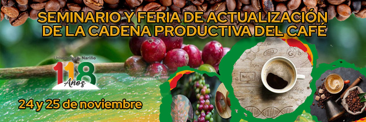 Desde el Departamento de Producción y Sanidad Vegetal de la Universidad de Nariño se invita al Seminario y Feria de Actualización de la Cadena Productiva del Café en el marco de la celebración del día del Ingeniero Agrónomo, los días 24 y 25 de noviembre