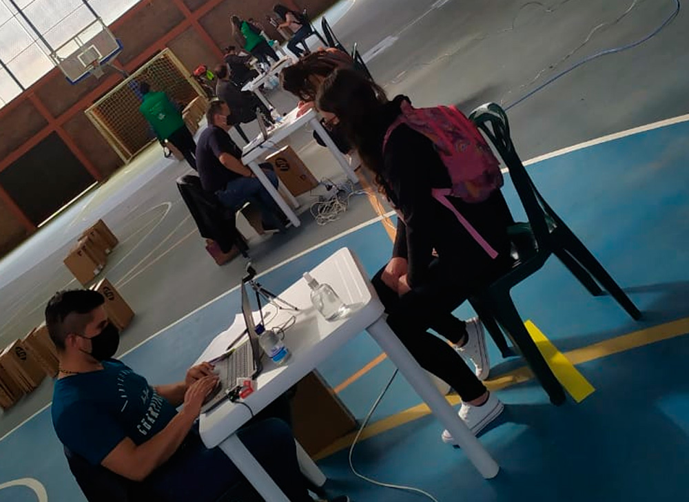 En el Coliseo Adriana Benitez los estudiantes y docentes beneficiados con este servicio, se dieron cita para recibir su equipo en calidad de préstamo