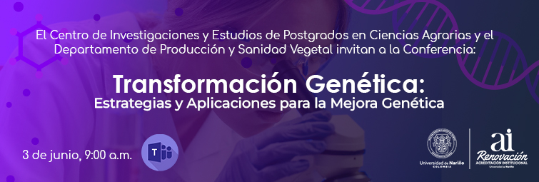 El Centro de Investigaciones y Estudios de Postgrados en Ciencias Agrarias y el Departamento de Producción y Sanidad Vegetal invitan a todos los interesados a participar de la Conferencia “Transformación Genética” dirigida por Perla Novais de Oliveira, Doctora en Fisiología y Bioquímica Vegetal de la Universidad de São Paulo – Brasil