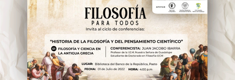 Filosofía para todos y la Universidad De Nariño Invitan a la comunidad en general para asistir al ciclo de conferencias historia de la filosofía y del pensamiento científico.