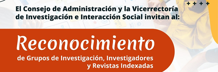 El Consejo de Administración y la Vicerrectoría de Investigación e Interacción Social se permiten invitar al Acto de reconocimiento de GRUPOS DE INVESTIGACIÓN, INVESTIGADORES Y REVISTAS INDEXADAS, que se llevará a cabo en el Auditorio Luis Santander el día Jueves 2 de mayo a las 7:50 a.m.