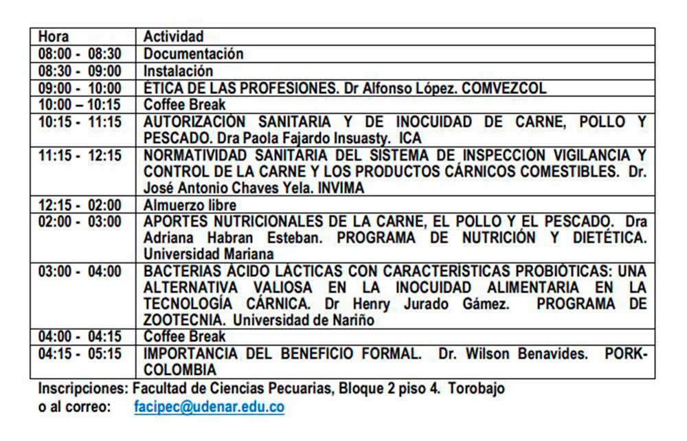 Dirigida a Estudiantes, Docentes y Egresados de las Facultades de Ciencias Pecuarias, Ingeniería Agroindustrial y Ciencias de la Salud de la Universidad de Nariño y la Universidad Mariana, funcionarios de FRIGOVITO, ICA, INVIMA, Pork-Colombia, productores, consumidores y público en general.