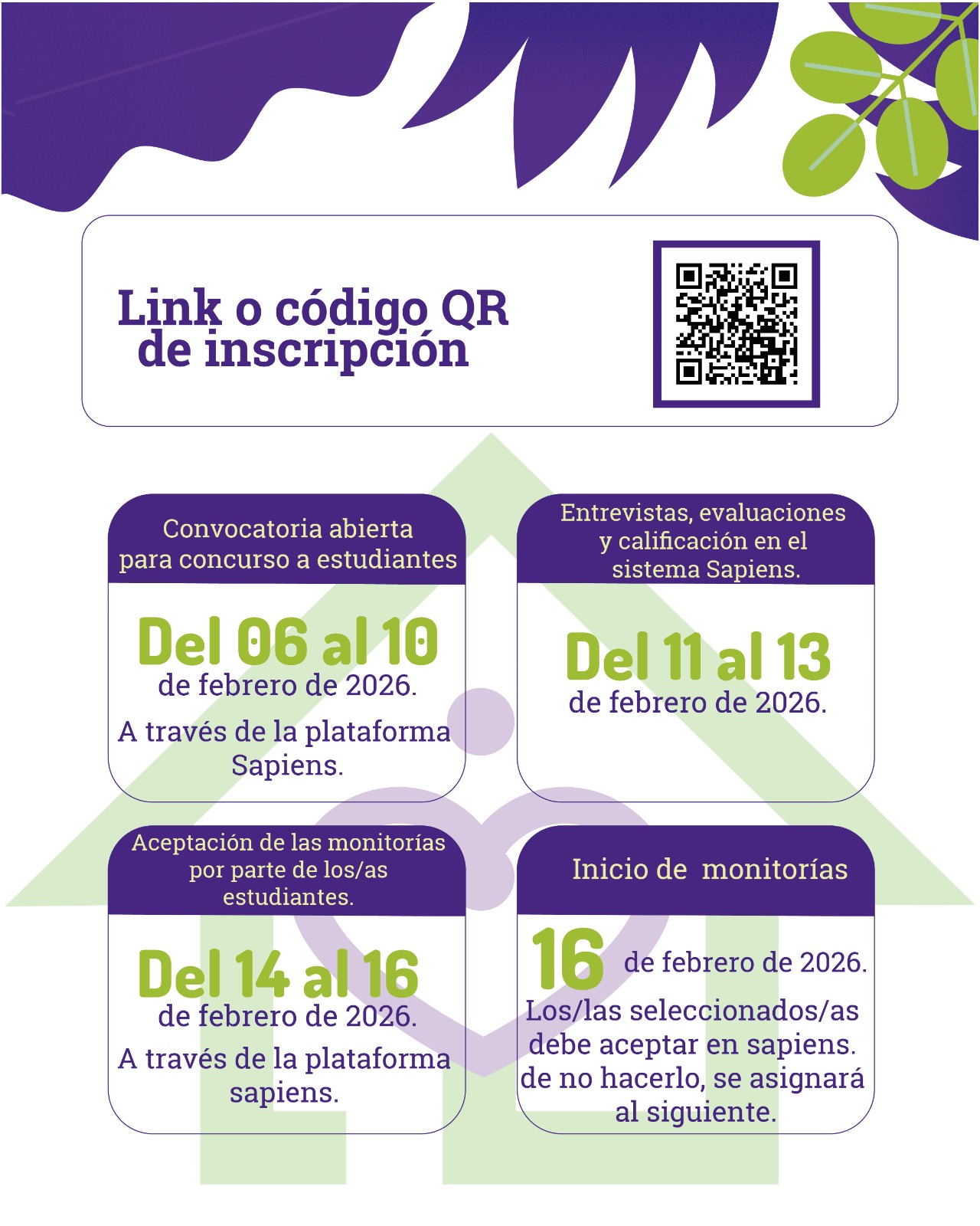Para cualquier consulta, pregunta o inquietud, le invitamos a dirigirse a la oficina de Bienestar Universitario, la cual se encuentra ubicada en el bloque 1 Sur. También puede comunicarse a través del número celular: 312 862 2839. Número de vistas: 22 Category: Eventos, Informativo Udenarfebrero 6, 2026Tags: 2025monitoriasCompartir esta publicaciónPublicaciones RelacionadasAcuerdo 008 de 2026 Facultad de Ingenieríafebrero 5, 2026Invitación Pública 010 Docentes Hora Cátedra por Servicios Prestados A2026febrero 5, 2026