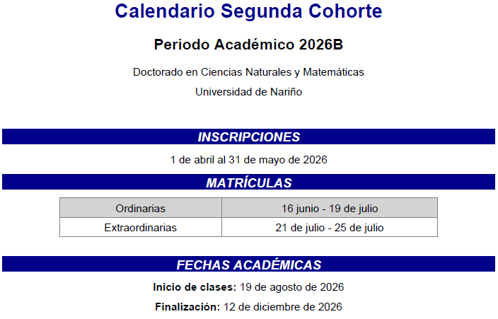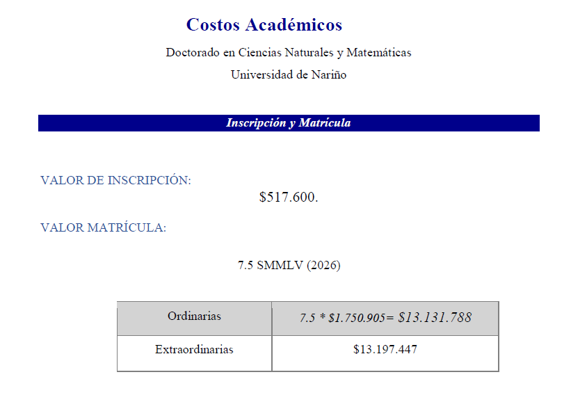 El Programa de Doctorado en Ciencias Naturales y Matemáticas de la Universidad de Nariño ofrece educación posgradual de alta calidad enfocada en la investigación para abordar problemáticas a nivel regional, nacional y global, con alto sentido de responsabilidad, ética y sustentabilidad, teniendo en cuenta el cuidado por la biodiversidad y la preservación del medio ambiente.