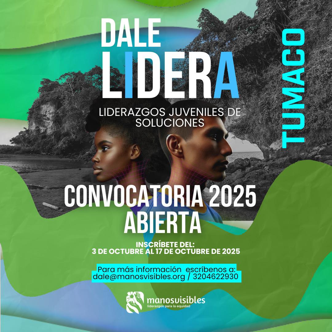 Desde la Corporación Manos Visibles, nos complace invitarles a difundir la convocatoria de la Escuela de Liderazgo DALE Tumaco, un programa gratuito orientado al fortalecimiento de liderazgos juveniles en el Pacífico colombiano.