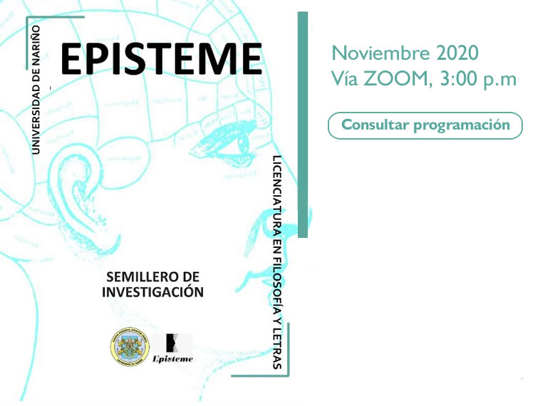 El Semillero de Investigación Episteme del Programa de Licenciatura en Filosofía y Letras de la Universidad de Nariño, invita a participar a toda la comunidad de la programación de los meses de Noviembre y Diciembre con importantes docentes invitados.