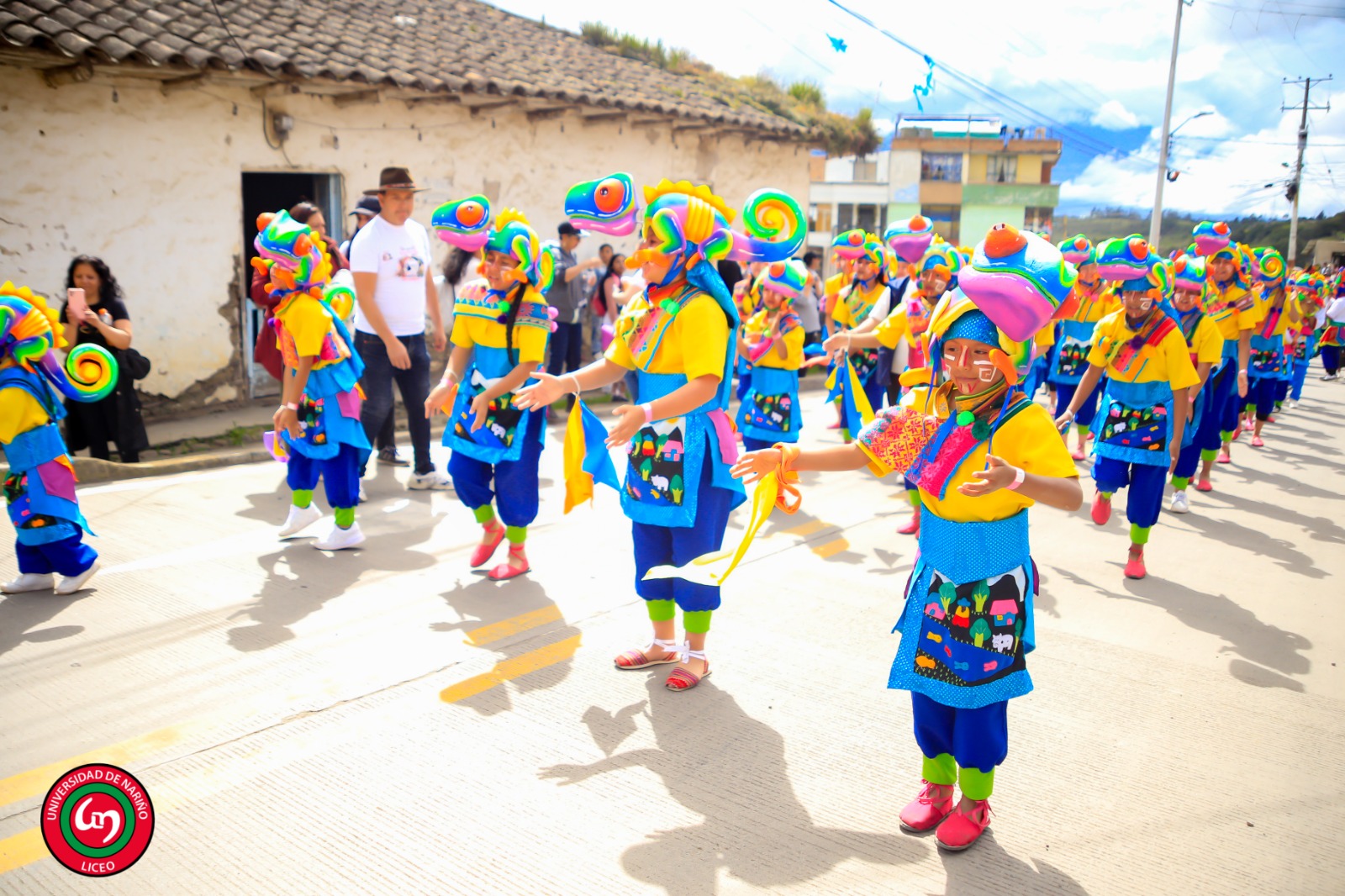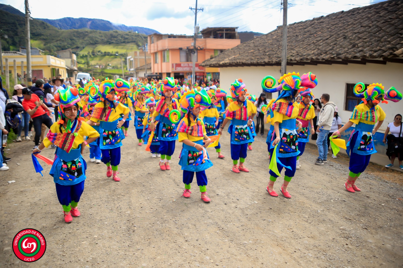 El proceso formativo se dinamizó a través de eventos clave, iniciando con los ensayos para el Carnavalito 2025 y extendiéndose hasta el mes de febrero, cuando se realizó el cierre oficial. Por primera vez, se llevó a cabo un desfile en el corregimiento de San Pedro de la Laguna, seguido por un recorrido en la comuna uno, barrio Boyacá, en la ciudad de Pasto. Durante esta jornada, se resaltó la importancia del Día de la No Participación de los Niños en la Guerra, simbolizado con la huella de color rojo como emblema de paz y compromiso con una sociedad libre de violencia. Además, los estudiantes también participaron activamente en la bienvenida al año lectivo liceísta, integrando expresiones artísticas y culturales que fortalecen el sentido de identidad y pertenencia a la comunidad educativa.