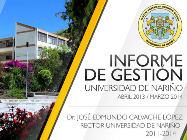 El presente documento “Informe de Gestión Abril 2013 – Marzo 2014” comprende el detalle-síntesis de las actividades realizadas en la Universidad de Nariño