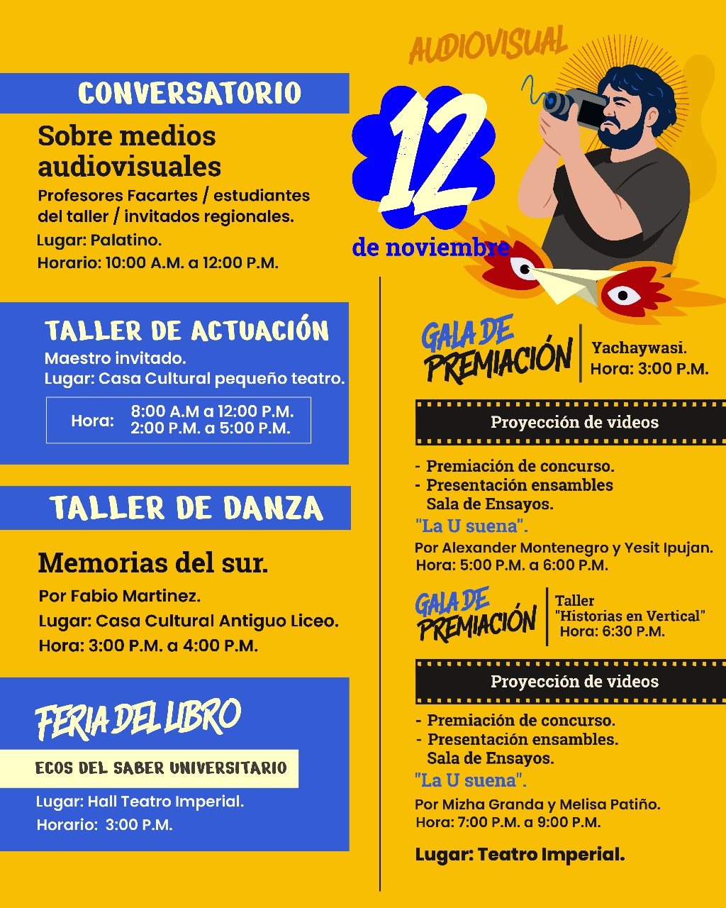 📍 Lugares: Teatro Imperial, Palatino, Sede VIIS, Torobajo y Centro