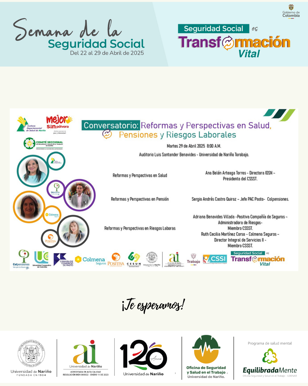 El comité Seccional de Seguridad y Salud en el Trabajo, invita a toda la comunidad Universitaria a participar de la capacitación: “Reformas y expectativas en salud, pensiones y riesgos laborales”.