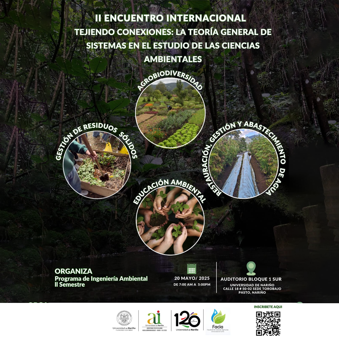 El segundo semestre del programa de Ingeniería Ambiental, tiene el gusto de invitarlos al II Encuentro Internacional: ‘Seminario tejiendo conexiones: la teoría general de sistemas en el estudios de las ciencias ambientales”.