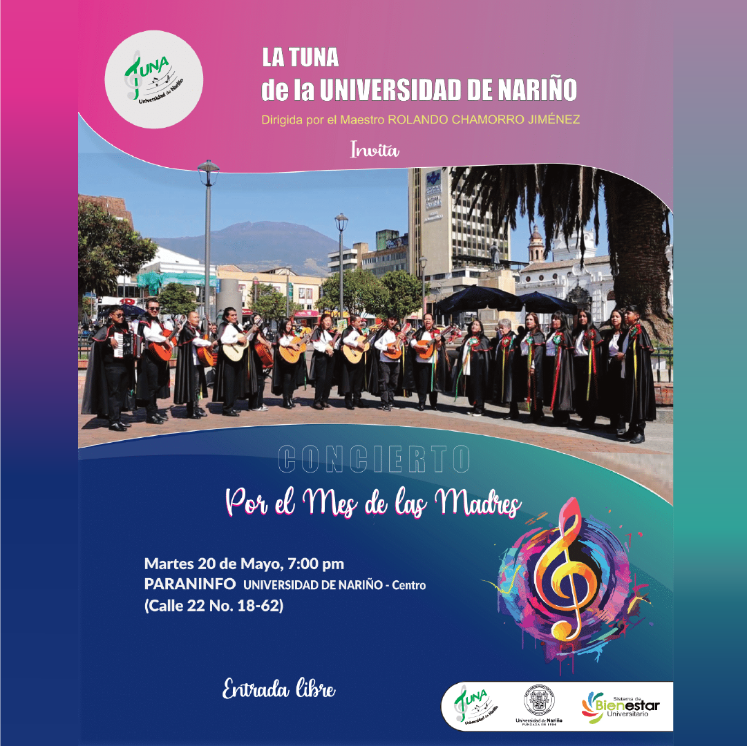 La Tuna Universidad de Nariño, dirigida por el maestro Rolando Chamorro, invita: al CONCIERTO POR EL MES DE LAS MADRES.