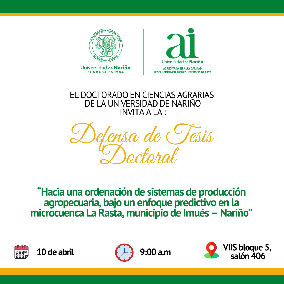 El Doctorado en Ciencias Agrarias de la Universidad de Nariño tiene el gusto de invitar a la defensa de tesis doctoral