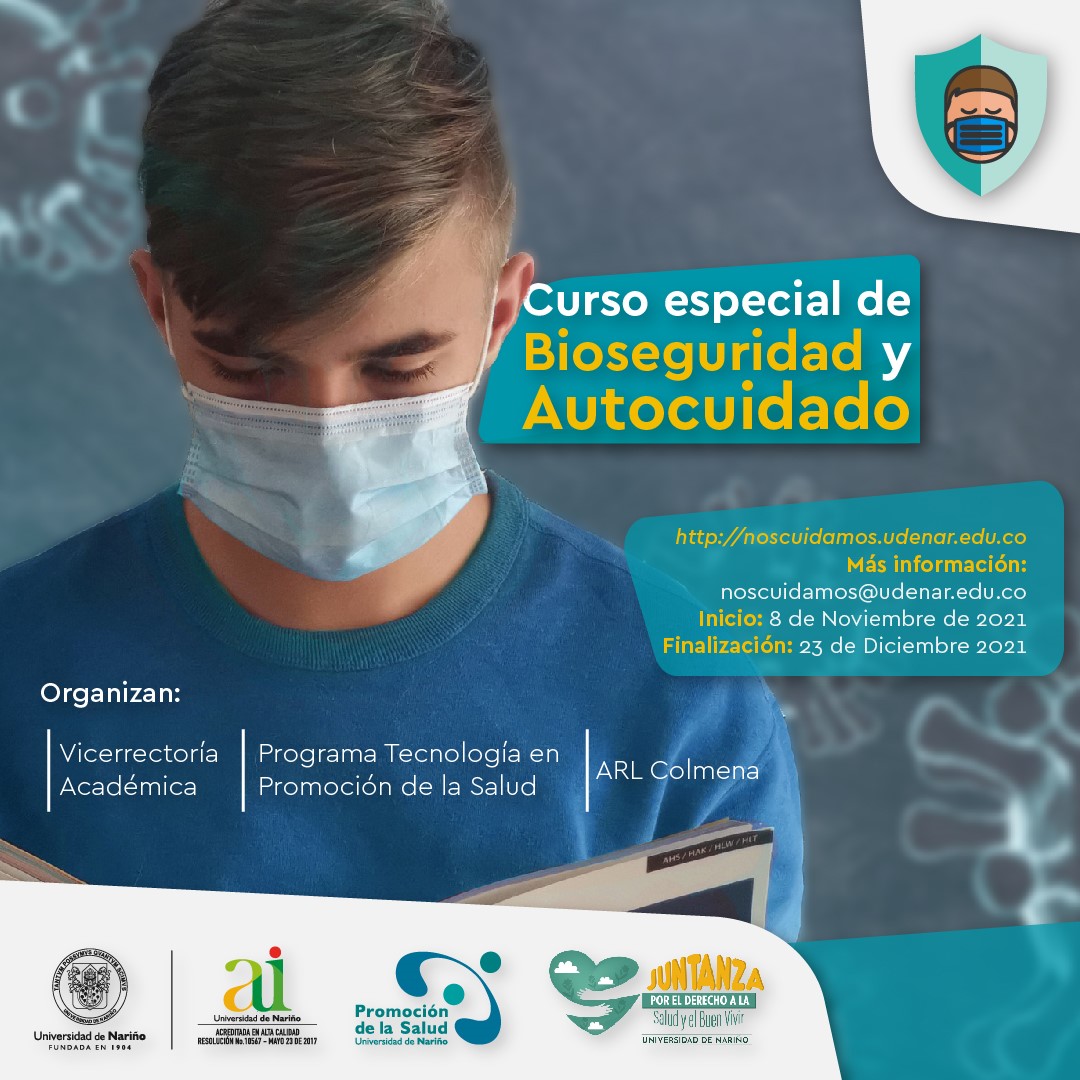 Curso especial de Bioseguridad y Autocuidado como una medida institucional OBLIGATORIA, cuyo objetivo es Capacitar a la comunidad estudiantil de la Universidad de Nariño en torno a herramientas prácticas de Bioseguridad y Autocuidado para el retorno a la presencialidad.